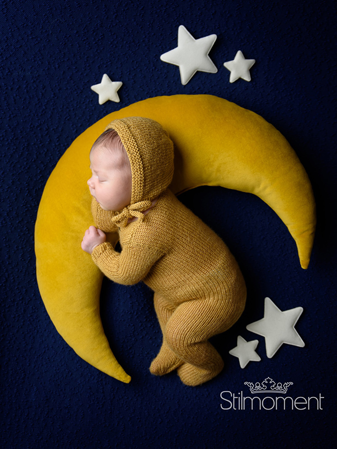 Wir sind immer noch total verliebt in dieses Motiv mit dem Mond. Und der senfgelbe Anzug passt auch perfekt dazu!