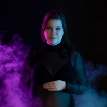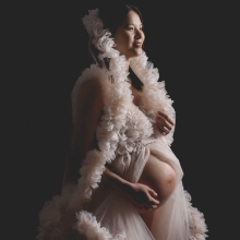 Ob in einem sanften Kleid auf dem gemütlichen Sofa, mit weich fließendem Stoff vor strahlendem Hintergrund, mit Farben und Nebel vor Schwarz, oder verschiedenen Motivhintergründen – Kombiniert mit angeleitetem Posing, großartiger Technik und passendem Licht erschaffen wir deine absoluten Traumfotos!